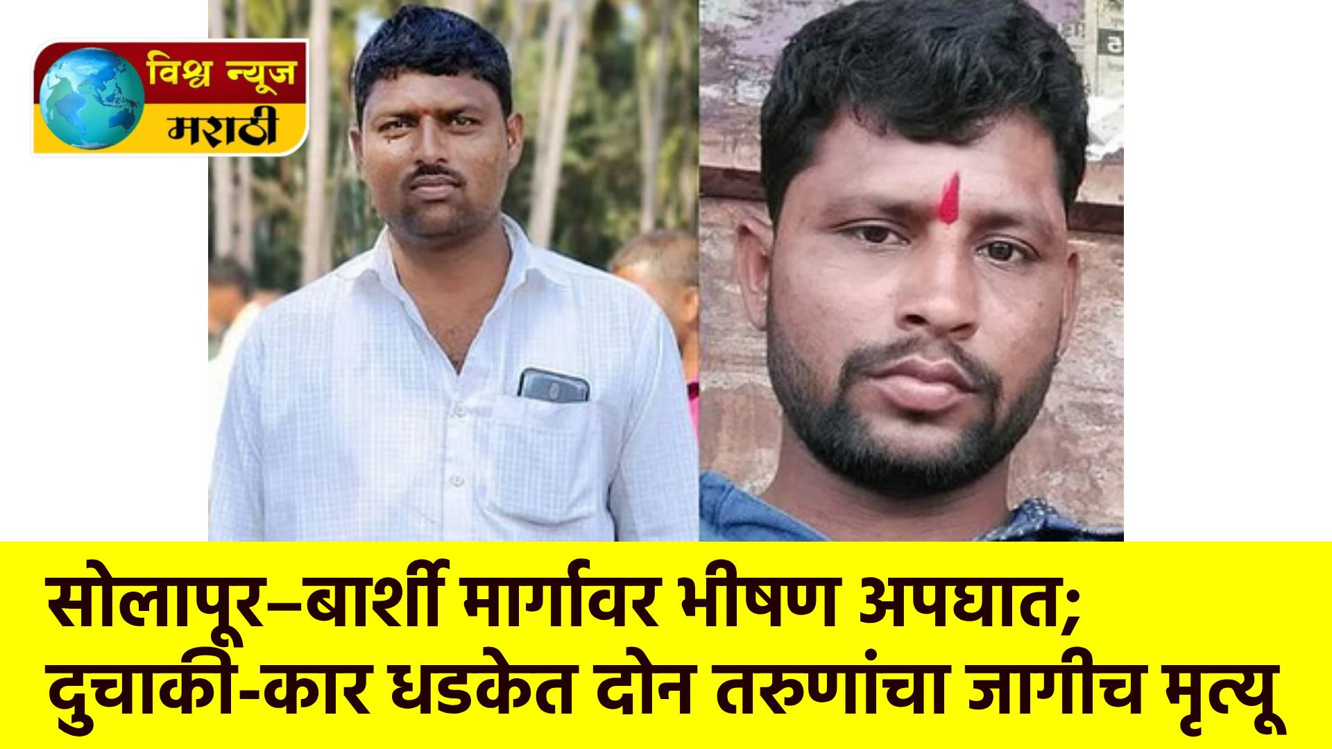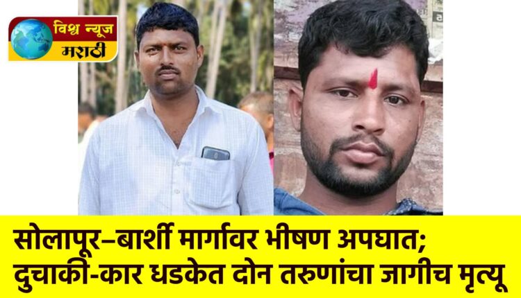 सोलापूर–बार्शी मार्गावर भीषण अपघात; दुचाकी-कार धडकेत दोन तरुणांचा जागीच मृत्यू