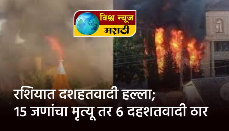 रशियातील दागेस्तानमध्ये रविवारी झालेल्या दहशतवादी हल्ल्यात पाद्री आणि पोलिसांसह एकूण १५ जणांचा मृत्यू झाला आहे. दहशतवाद्यांनी दोन रशियन चर्च, एक सिनेगॉग आणि पोलिस चौकीवर हल्ला केला. या हल्ल्यांमध्ये एका पुजा-याचा ही मृत्यू झाला आहे. याशिवाय अनेक पोलीस कर्मचारी आणि नागरिक मारले गेल्याचे वृत्त आहे. दहशतवादी हल्ल्यादरम्यान चर्चमध्ये आग लागल्याचीही पुष्टी झाली आहे.