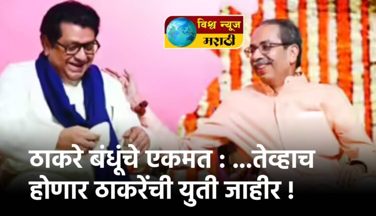 आगामी स्थानिक स्वराज्य संस्थांच्या निवडणुकीत मनसे आणि शिवसेना ठाकरे गटाची युती करण्याचे निश्चित झाले आहे. शिवसेना ठाकरे गटाच्या दसरा मेळाव्यात मनसेसोबत युतीची घोषणा होणार असल्याचे ठाकरे गटात बोलले जात होते. पण युतीची घोषणा करण्यापूर्वी जागावाटपाचा फॉर्म्युला निश्चित करूया, असे ठाकरे बंधूंनी ठरविले आहे.