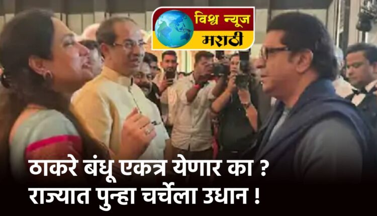 गेल्या अनेक वर्षांपासून राज्यात राज ठाकरे आणि उद्धव ठाकरे हे दोघे एकत्र येणार का? यावर नेहमीच चर्चा सुरु असते. त्यातच विधानसभा निवडणुकीत दोन्ही नेत्यांच्या पक्षांना अपयश मिळाले आहे. त्यामुळे पराभवाच्या छायेत असलेल्या या दोन्ही भावांनी आता एकत्र यावे, अशी चर्चा पुन्हा एकदा सुरू झाली आहे. त्यातच आगामी स्थानिक स्वराज्य संस्थांच्या निवडणुका आता जवळ आल्या आहेत. त्यामुळे या दोन्ही नेत्यांबाबत अनेक तर्क-वितर्क लावले जात आहेत. या दरम्यान मुंबईमध्ये एका कार्यक्रमादरम्यान हे दोन्ही भाऊ एकमेकांसोबत हास्य विनोद करताना दिसून आले. त्यामुळे ठाकरे पुन्हा एकत्र येणार का? अशी चर्चा पुन्हा एकदा रंगली आहे.