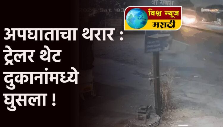 राज्यातील अनेक शहरात अपघाताच्या नियमित मालिका सुरु असून नुकतेच शिरूरमध्ये एक भीषण अपघाताची बातमी समोर आली आहे. पुणे-अहमदनगर राष्ट्रीय महामार्गावरील सरदवाडीमध्ये भरधाव येणारा लांब पल्ल्याचा ट्रेलर थेट दुकानांमध्ये घुसल्याची घटना घडली आहे. मात्र सुदैवाने रात्रीची वेळ असल्याने मोठा अनर्थ टळला. या अपघाताचा थरार सीसीटीव्हीमध्ये कैद झाला आहे.