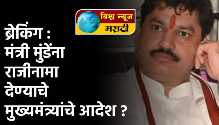 ब्रेकिंग : मंत्री मुंडेंना राजीनामा देण्याचे मुख्यमंत्र्यांचे आदेश ?