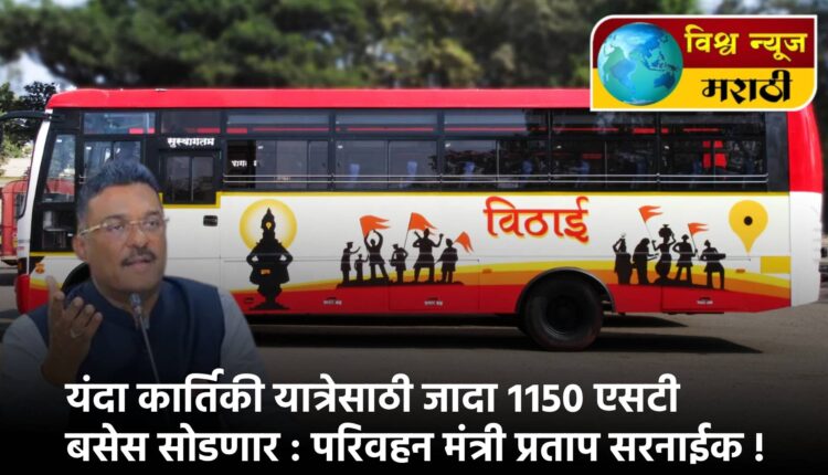 यंदा श्री. क्षेत्र पंढरपूर येथे २ नोव्हेंबर रोजी संपन्न होणाऱ्या कार्तिकी एकादशी यात्रेसाठी भाविक- प्रवाशांच्या सोयीकरता राज्यभरातुन एसटी महामंडळ तब्बल ११५० जादा बसेस सोडण्याची तयारी केली आहे. अशी माहिती परिवहन मंत्री तथा एसटी महामंडळाचे अध्यक्ष श्री. प्रताप सरनाईक यांनी दिली.
