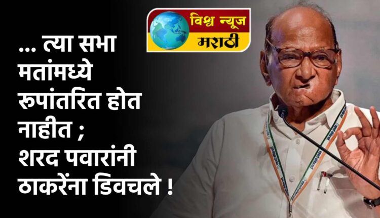 “राज ठाकरे यांच्या सभा आकर्षक आणि गजबजलेल्या असतात, त्यांना चांगली गर्दी मिळते, मात्र त्या सभा मतांमध्ये रूपांतरित होत नाहीत. माझा आतापर्यंतचा अनुभव असाच आहे,” असे परखड मत शरद पवार यांनी यावेळी मांडले. त्याचवेळी त्यांनी उद्धव ठाकरे यांच्या सभांवर विश्वास व्यक्त करत सांगितले की, “उद्धव ठाकरे यांच्या सभांमुळे मतांमध्ये निश्चित परिवर्तन घडताना दिसतं.”