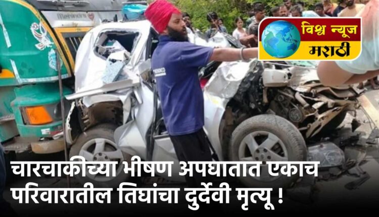 राज्यातील अनेक महामार्गावर अपघाताच्या मालिका सुरु असतांना आता मुंबई-अहमदाबाद महामार्गावर वाडा खडकोना गावाच्या हद्दीत शनिवारी सकाळी झालेल्या भीषण अपघातात कार मधील एकाच कुटुंबातील तिघांचा मृत्यू झाला, तर दोन जण गंभीर जखमी झाले आहेत. सकाळी साडेअकरा वाजण्याच्या सुमारास मेंढवण खिंडीच्या उतारावर मनोर गेट हॉटेल समोर हा अपघात झाला. ग्लोरिया वेल्स (वय 73), क्लेटन वेल्स (वय 42) आणि फॅबीओला वेल्स (वय 45) अशी अपघातात मृत्यू झालेल्यांची नावे आहेत. हेनान वेल्स (वय 63) आणि रेडन वेल्स (वय 9) हे जखमी झाले आहेत. त्यांना उपचारासाठी खासगी रुग्णालयात दाखल करण्यात आले आहे.