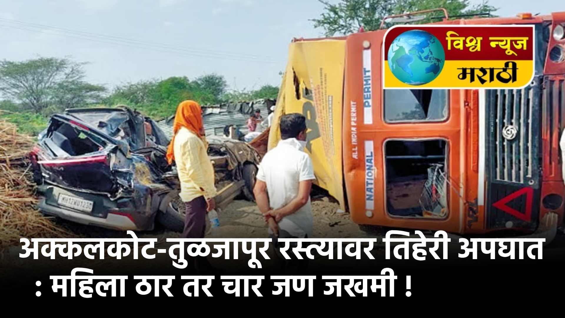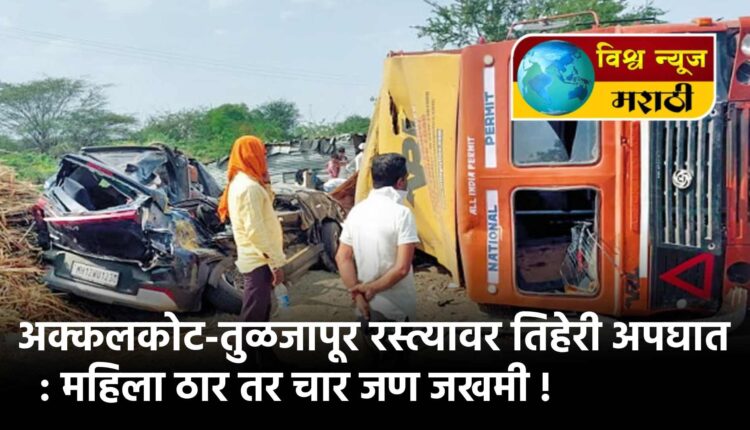 अक्कलकोट-तुळजापूर रस्त्यावर तिहेरी अपघात : महिला ठार तर चार जण जखमी !
