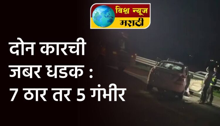 मिळालेल्या माहितीनुसार, नागपूर येथून मुंबईच्या दिशेने राँग साईड येणाऱ्या कारने दुसऱ्या एका कारला भरधाव वेगात धडक दिली. यात दोन्ही वाहनांचा चक्काचूर झाला असून 7 जणांचा मृ्त्यू झाला आहे. तर 5 जण गंभीर जखमी झाले असून त्यांना उपचारासाठी हलविण्यात आले आहे. मृताची ओळख पटली नाही.