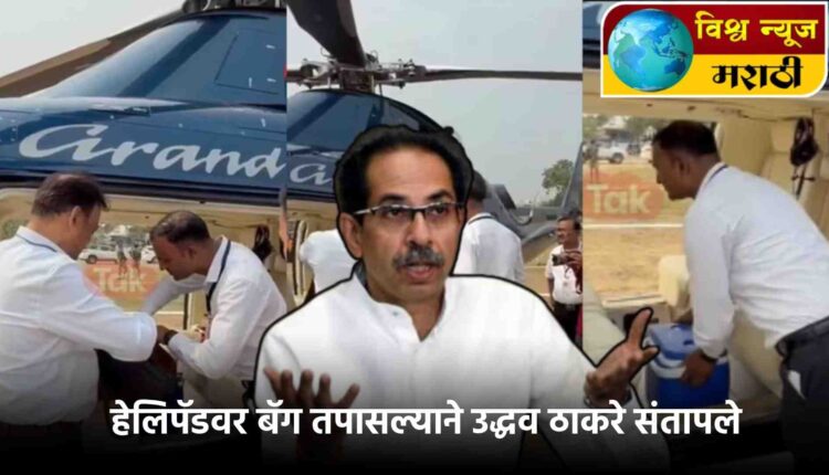 राज्यात विधानसभा निवडणुकीच्या पाश्वभूमीवर राजकीय वातावरण तापले असून प्रचारासाठी उद्धव ठाकरे यांची आज वणी येथे सभा पार पडली. या सभेसाठी ठाकरे हेलिकॉप्टरने सभास्थळी रवाना झाले होते. यावेळी हेलिपॅडवर उतरताच ठाकरे आणि मिलिंद नार्वेकर यांची बॅग निवडणूक अधिकाऱ्यांनी तपासल्याचा व्हिडीओ समोर आला आहे. या घटनेनंतर सभेत उद्धव ठाकरे चांगलेच संतापल्याचे पाहायला मिळाले. यावेळी त्यांनी महायुतीवर जोरदार निशाणा साधल्याचे दिसून आले.