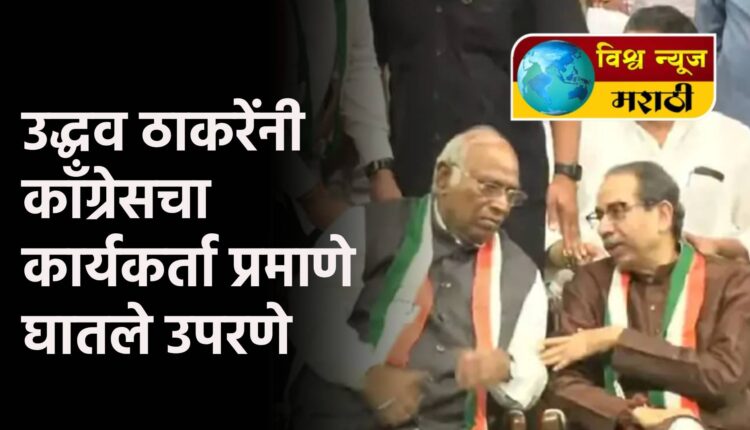 उद्धव ठाकरेंनी काँग्रेसचा कार्यकर्ता प्रमाणे घातले उपरणे