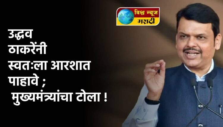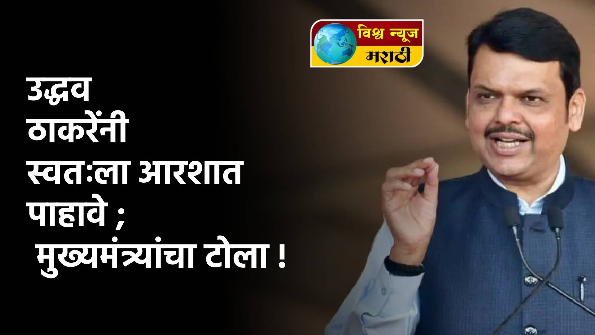 शेतकऱ्यांच्या मागण्यांसाठी हंबरडा मोर्चा काढण्यापूर्वी स्वतःला आरशात पाहा, असा टोला मुख्यमंत्री देवेंद्र फडणवीस यांनी शनिवारी शिवसेना उद्धव बाळासाहेब ठाकरे पक्षाचे पक्षप्रमुख उद्धव ठाकरे यांना हाणला. उद्धव ठाकरे यांनी स्वतःला आरशात पहावे. त्यांनी स्वतःला आरशात पाहिले तर ते अशा प्रकारचे मोर्चे काढणार नाहीत, असे ते म्हणालेत.