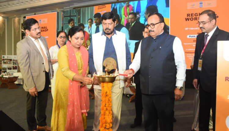 केंद्र शासनाच्या सामाजिक न्याय व विशेष अधिकारीता मंत्रालय व राज्याच्या सामाजिक न्याय विभागाच्या संयुक्त विद्यमाने हॉटेल दी रिट्झ कार्लट्न येरवडा येथे आयोजित देशपातळीवरील दोन दिवसीय क्षेत्रीय कार्यशाळेच्या उद्घाटनप्रसंगी राज्यमंत्री श्री. आठवले बोलत होते. यावेळी राज्याचे बहुजन कल्याण विभागाचे मंत्री अतुल सावे, पंजाबच्या सामाजिक न्याय मंत्री श्रीमती बलजीत कौर, केंद्रीय सामाजिक न्याय व सक्षमीकरण मंत्रालयाचे अतिरिक्त सचिव सुरेंद्र सिंग, सहसचिव इंदिरा मूर्ती, आर.पी. मीना, राज्याचे समाज कल्याण आयुक्त डॉ. प्रशांत नारनवरे, सामाजिक न्याय विभागाचे सहसचिव दिनेश डिंगळे आदी उपस्थित होते.