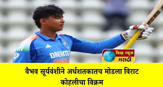 बांगलादेशविरुद्ध खेळताना वैभवने अवघ्या 30 चेंडूत अर्धशतक पूर्ण केलं. या अर्धशतकासह त्याने अंडर 19 वर्ल्ड कप आणि यूथ वनडे क्रिकेटमध्ये भारताचा दिग्गज फलंदाज विराट कोहलीचा महत्त्वाचा विक्रम मोडीत काढला. वैभव अंडर 19 वर्ल्ड कपमध्ये सर्वात जलद अर्धशतक झळकावणारा भारतीय फलंदाज ठरला.