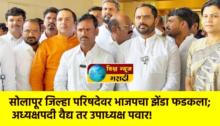 सोलापूर जिल्हा परिषदेच्या अध्यक्षपदी अपेक्षेप्रमाणे बार्शी तालुक्यातील उपळाई ठोंगे गटातून विजयी झालेले भारतीय जनता पक्षाचे दीपक वैद्य यांची, तर उपाध्यक्षपदी उत्तर सोलापूर तालुक्यातील बीबी दारफळ गटातून निवडून आलेले इंद्रजीत पवार यांची निवड करण्यात आली आहे. पालकमंत्री जयकुमार गोरे यांनी या दोन्ही नावांची अधिकृत घोषणा केली. ही निवड सव्वा वर्षासाठी असणार आहे.