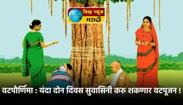 पतीच्या आयुष्याची दोरी बळकट होऊ दे, अशी प्रार्थना करण्याचा सण वडाला धागा बांधून वटपौर्णिमा यंदा महिलांना दोन दिवस साजरी करता येणार आहे. यंदा मंगळवारी (दि.१०) साडेअकरानंतर पाैर्णिमेला प्रारंभ होणार आहे. त्यामुळे या दिवशी सकाळी वटपुजन न करता दुपारनंतर महिला वटपूजन करणार आहेत. बुधवारी (दि.१०) सुर्याने पाहिलेली तिथी याही दिवशी दुपारी १.१५ वाजेपर्यंत पौर्णिमा असणार आहे. त्यामुळे यंदा दोन दिवस सुवासिनी महिलांना वटपूजनाची संधी मिळणार आहे.