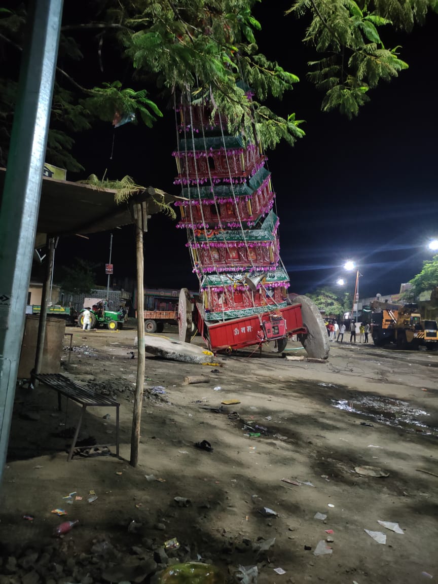 अक्कलकोट, दि.२६ : अक्कलकोट शहरापासून वागदरी येथील ग्रामदैवत परमेश्वर यात्रा उत्सव काळात ठेर (रथ) ओढणे या धार्मिक कार्यक्रमामध्ये अचानकपणे रथाच्या चाकाची पार निसटल्याने दुर्घटना होवून दोघे भाविक गंभीर जखमी होवून मृत्यू झाल्याची दुर्दैवी घटना रविवारी सुर्यास्ताच्या दरम्यान घडल्याने तालुक्यात खळबळ उडाली आहे.याबाबत प्राप्त मिळालेली अधिक माहिती अशी की, वागदरी येथील ग्रामदैवत परमेश्वर यात्रा मोठ्या उत्साहात चालु होती. मोठ्या प्रमाणात सीमावर्ती भागातून भाविक यात्रेकरिता जमले होते. यात्रेतील मुख्य घटक रथ ओढणे परमेश्वर मंदिर ते बसस्थानक भागापर्यंत असंख्य भाविक रथ ओढतात. सुमारे १२ फुट रुंदी असलेला रथाचे गोलाकार दगडी चाक आहेत.रथ ओढणे हा धार्मिक विधीवेळी परमेश्वर महाराज की जय…! ची घोषणा देतात व रथावर खारीक प्रासादिक वस्तूंचे उधळण करतात. यंदा सूर्यास्ताच्या दरम्यान हा रथ ओढत असताना अचानकपणे ही दुर्दैवी घटना घडल्याने हळहळ व्यक्त केले जात आहे. या दुर्घटनेत इरणणा गिरमलला नंदे आणि गंगाराम तिपन्ना मंजुळकर हे गंभीर जखमी झाले. उपचारापूर्वी त्यांचे निधन झाले. यादरम्यान एक पोलिस अधिकारी जखमी झाल्याची माहिती मिळत आहे. या घटनेनंतर वागदरी येथील परमेश्वर यात्रा उत्सवातील सर्व कार्यक्रम रद्द करण्यात आल्याचे कळते.दरम्यान अक्कलकोट उत्तर पोलीस ठाण्याचे अधिकारी व पोलीस घटनास्थळी दाखल झाले आहेत.डीवायएसपी राजेंद्रसिंह गौर,पोलीस निरीक्षक जितेंद्र कोळी,तहसीलदार बाळासाहेब सिरसट, गटविकास अधिकारी सचिन खुडे,तालुका वैदयकीय अधिकारी असे सर्व जण घटनास्थळी दाखल झाले आहेत.