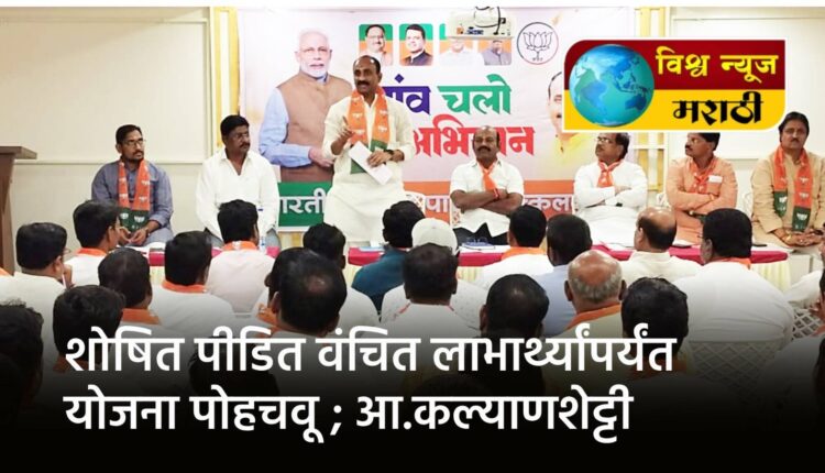 येथे “गाव चलो अभियान” अंतर्गत संमधीत जबाबदार प्रमुखांनी केंद्र व राज्य शासनाचे लोकल्याणकारी योजनेचे माहिती शेवटच्या घटकातील शोषित पीडित वंचित लाभार्थ्यांपर्यंत पोहोचवण्यासाठी झटावे असे आवाहन आमदार सचिन कल्याणशेट्टी यांनी केले. अक्कलकोट शहरातील फोर पेटल्स या हॉटेल च्या सभागृहात अक्कलकोट विधानसभा वॉरियर्स, शक्ती केंद्र प्रमुख, शक्ती केंद्र प्रभारी, प्रमुख कार्येकर्ते यांचे बैठकीचे आयोजन करण्यात आलेहोते या आमदार कल्याणीशेट्टी बोलत होते.
