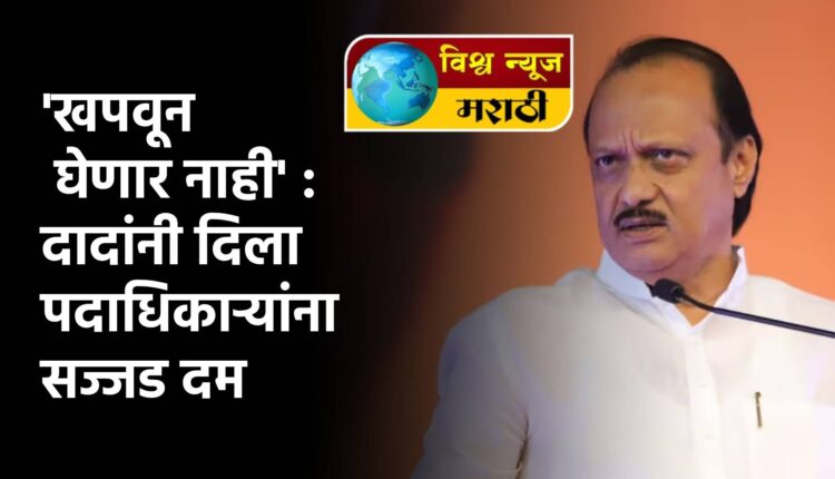 उपमुख्यमंत्री अजित पवार म्हणाले कि, चारित्र्य आणि जनमानसात प्रतिमा स्वच्छ ठेवा. चुकीचं काम केल्यास मकोका लावायला मागेपुढे पाहणार नाही, असा सज्जड दम यावेळी पदाधिकाऱ्यांना दिला. अजित पवार यांनी बीडचे पालकमंत्री पदाची सुत्र हातात घेतल्यानंतर आज दि. ३० त्यांचा पहिलाच बीड दौरा आहे. यावेळी पदाधिकाऱ्यांच्या बैठकीत त्यांनी ‘खपवून घेणार नाही’ असा दम देतानाच कानपिचक्या दिल्या.