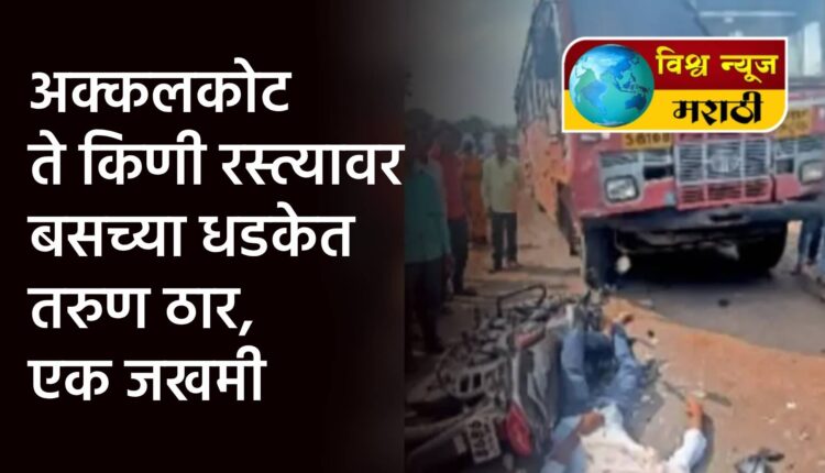 मिळालेल्या माहितीनुसार, अविनाश नरसप्पा कलशेट्टी (वय २७ रा हंगरगा ता.तुळजापूर जि धाराशिव) असे मृत तरुणाचे नाव आहे तर विजयकुमार बब्रुवान साबळे (रा. हंगरगा ता. तुळजापूर जि. धाराशिव) हा जखमी झाला. या प्रकरणी अक्कलकोट उत्तर पोलिस ठाण्यात एसटी चालक महांतेश बसण्णा फुलारी (रा. जेऊर ता. अक्कलकोट) याच्या विरोधात गुन्हा दाखल झाला. मृत कलशेट्टी व साबळे हे दोघे दुचाकीवरुन एम एच १४ एफ एल ९८९८ निघाले असताना समोरुन आलेल्या एसटीने एम एच ०६ एस ८१६८ जोराची धडक दिल्याने अविनाश कलशेट्टीचा मृत्यू झाल्याचे फिर्यादीत म्हटले आहे.